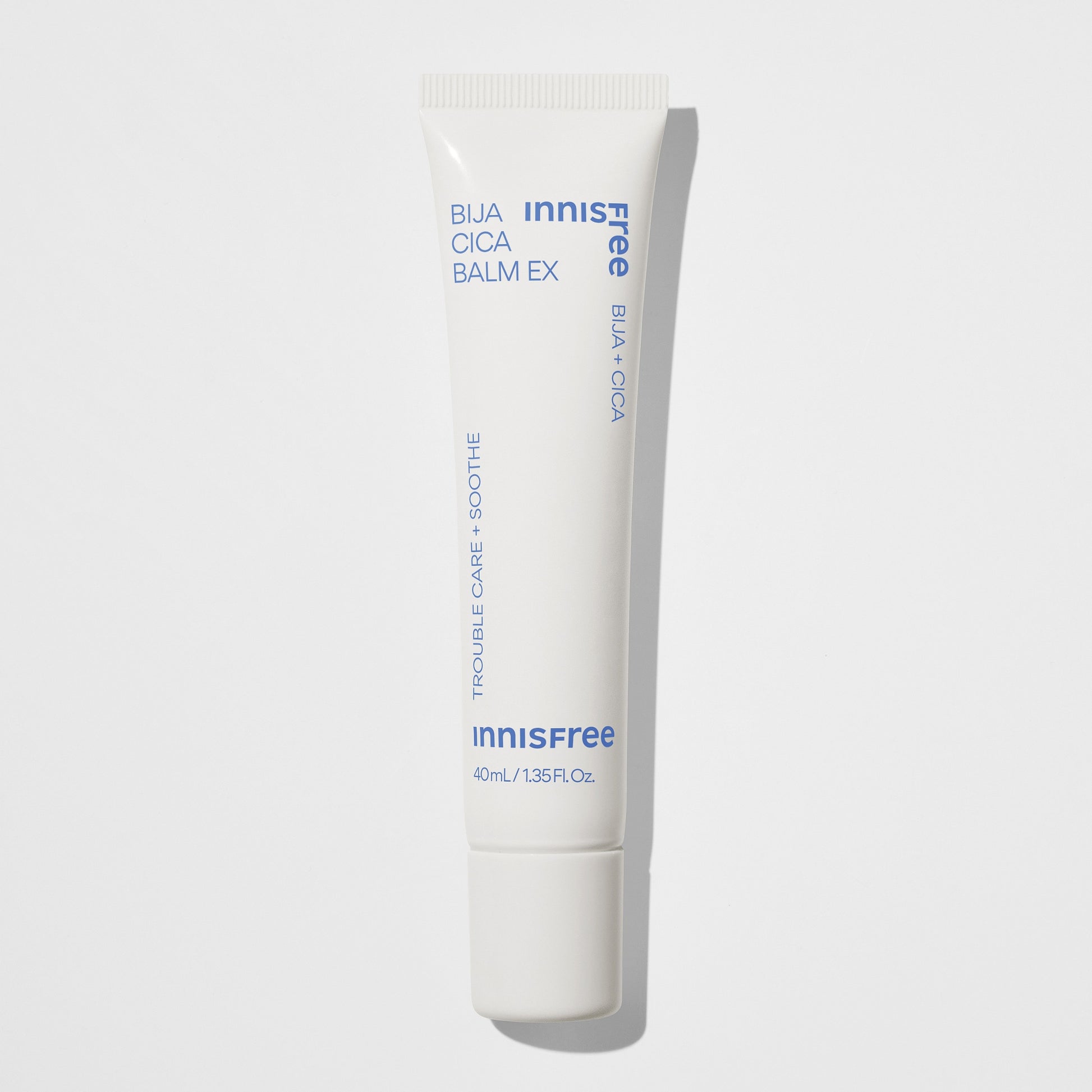 Kem dưỡng ẩm làm dịu da mụn nhạy cảm innisfree Bija Cica Balm EX chiết xuất từ tinh chất rau má, dầu hạt Bija và D-Panthenol giúp tăng sức đề kháng cho da và làm mờ thâm mụn mới. Phù hợp với da khô hoặc da hỗn hợp thiên khô.