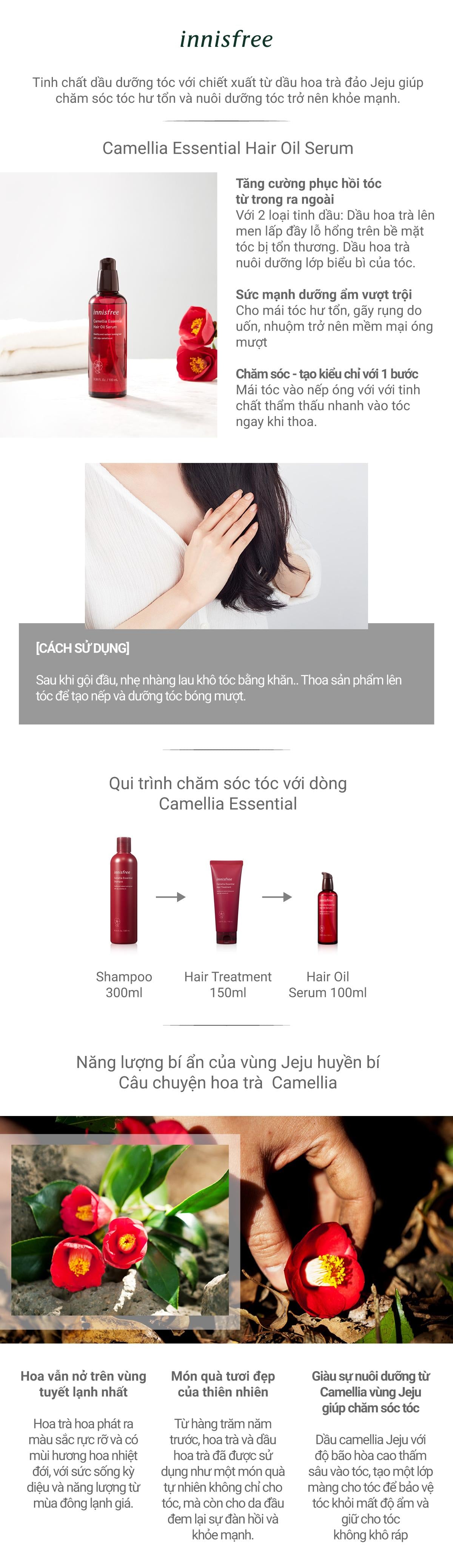 | Tên sản phẩm | Dầu dưỡng tóc hương hoa trà INNISFREE Camellia Essential Hair Oil Serum 100 mL |