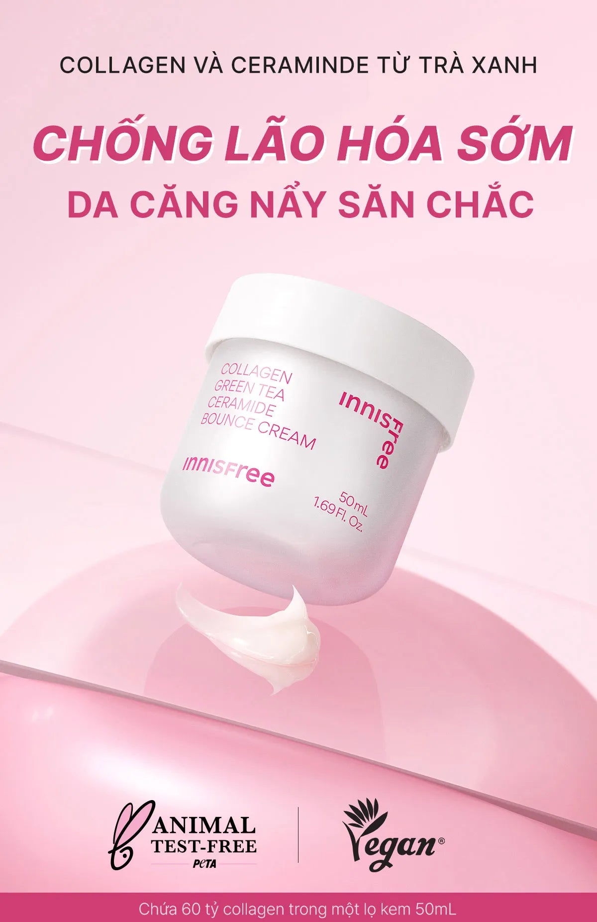 | Tên sản phẩm | Kem dưỡng giúp làm mờ các dấu hiệu lão hóa trên da INNISFREE Collagen Green Tea Ceramide Bounce Cream 50mL |