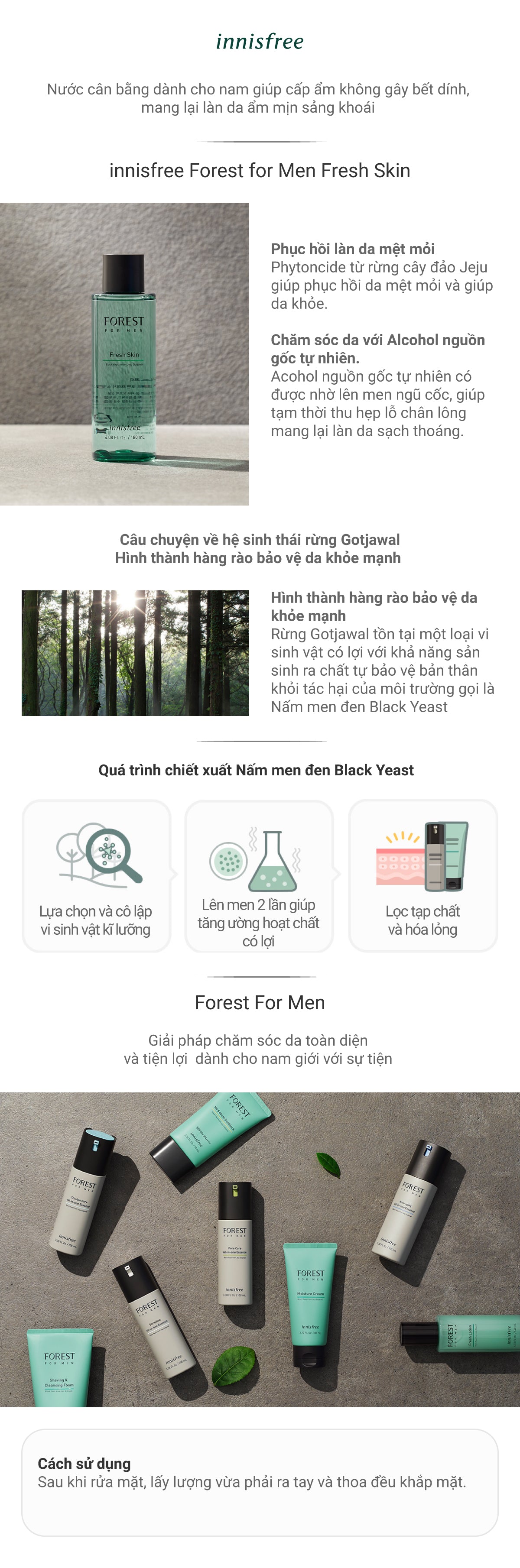 | Tên sản phẩm | Nước cân bằng dành cho nam INNISFREE Forest for men Fresh Skin 180 mL |