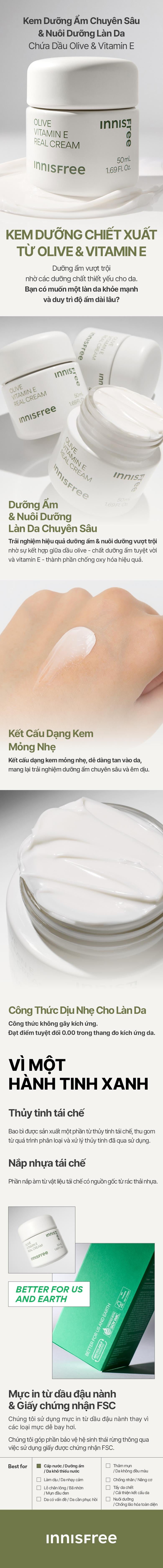 | Tên sản phẩm | Kem dưỡng ẩm INNISFREE Olive Vitamin E Real Cream 50G |
