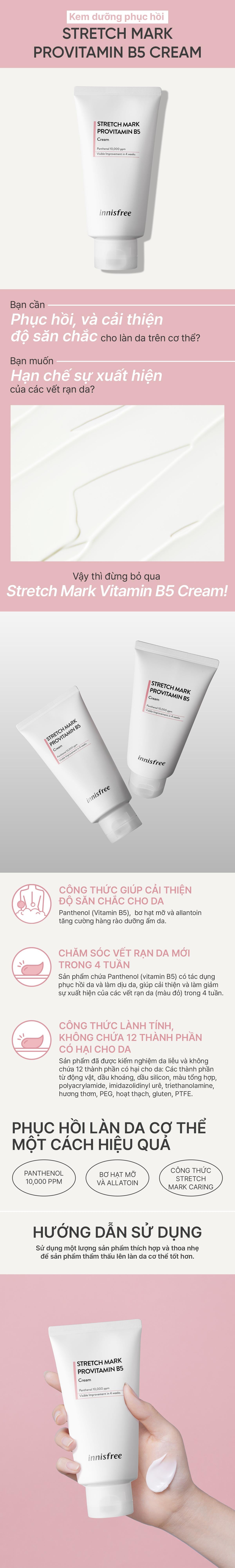 | Tên sản phẩm | Kem dưỡng cải thiện vết rạn với Provitamin B5 INNISFREE Stretch Mark Provitamin B5 Cream 150 mL |